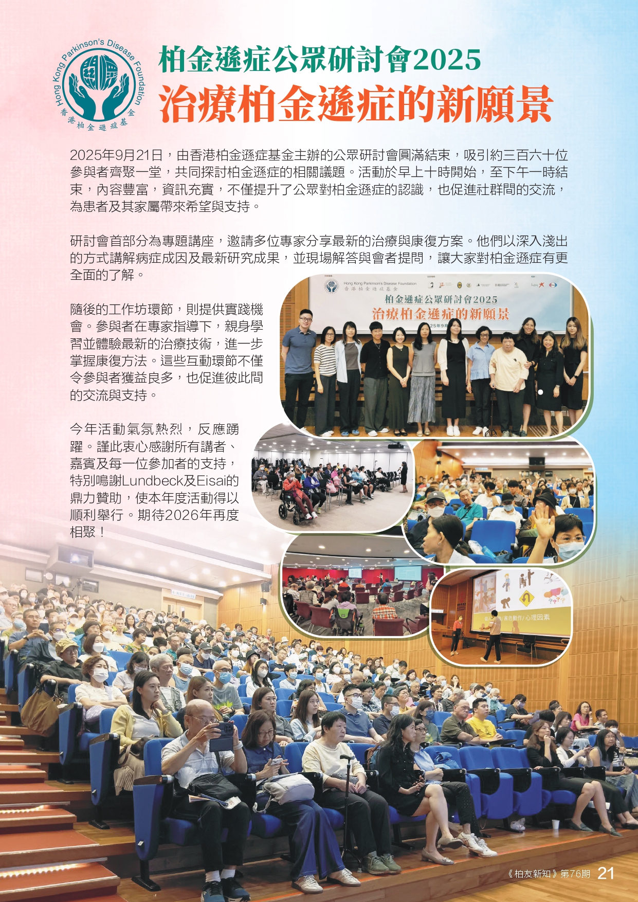 2025年9月21日,由香港柏金遜症基金主辦的公眾研討會圓滿結束,吸引約三百六十位參與者齊聚一堂,共同探討柏金遜症的相關議題。