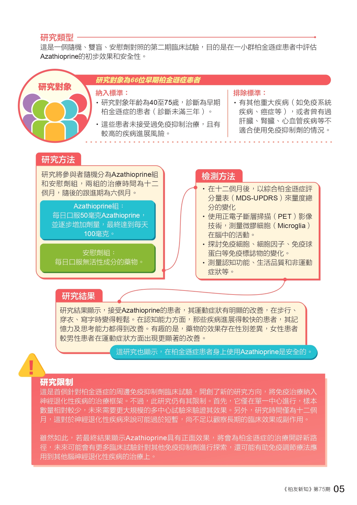 研究結果顯示,接受Azathioprine的患者在運動和認知功能上有顯著改善,特別是女性患者的改善更為明顯。這是針對柏金遜症的首個周邊免疫抑制劑臨床試驗,未來有望開啟新的治療方向!