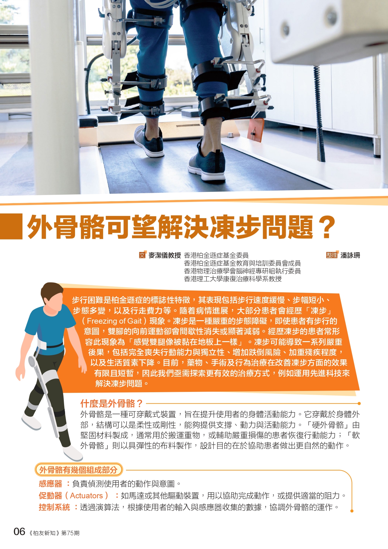柏金遜症患者常面臨步行困難,尤其是「凍步」現象,這會導致行走意圖無法實現,雙腳似乎被黏在地板上。凍步不僅影響行動能力,還可能增加跌倒風險,嚴重影響生活質素。雖然目前的治療效果有限,但探索先進科技如外骨骼的應用,或許能為患者帶來新的希望!